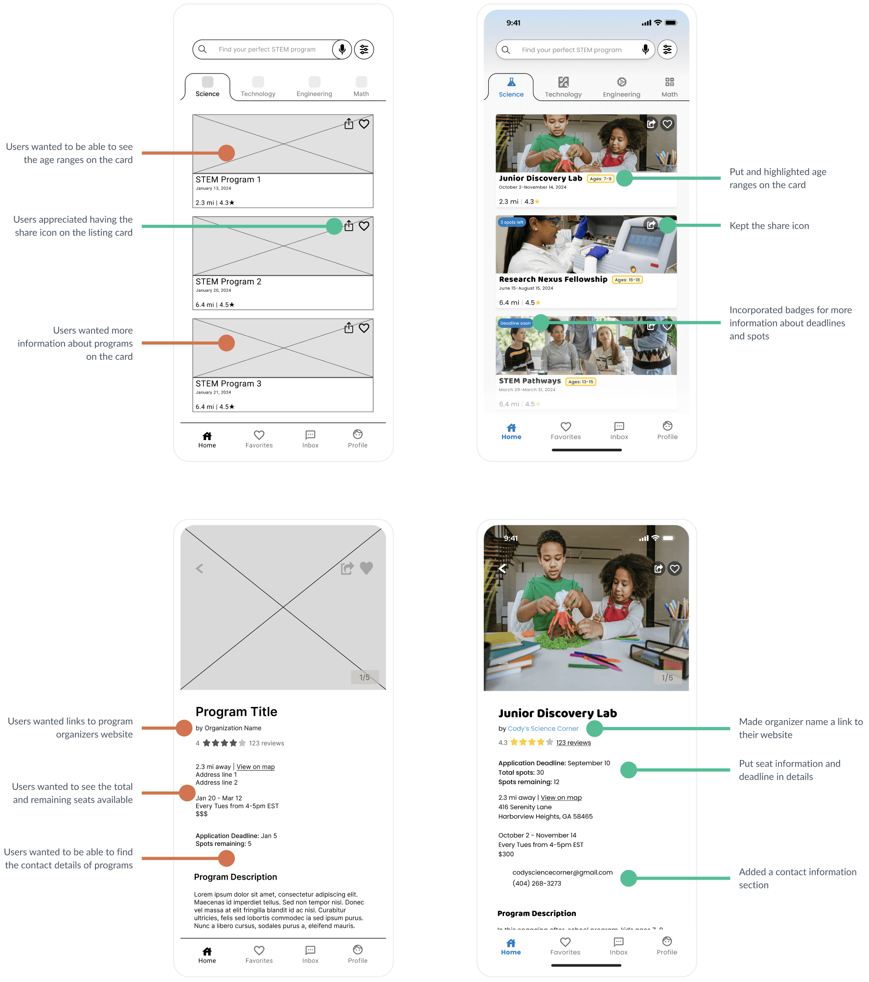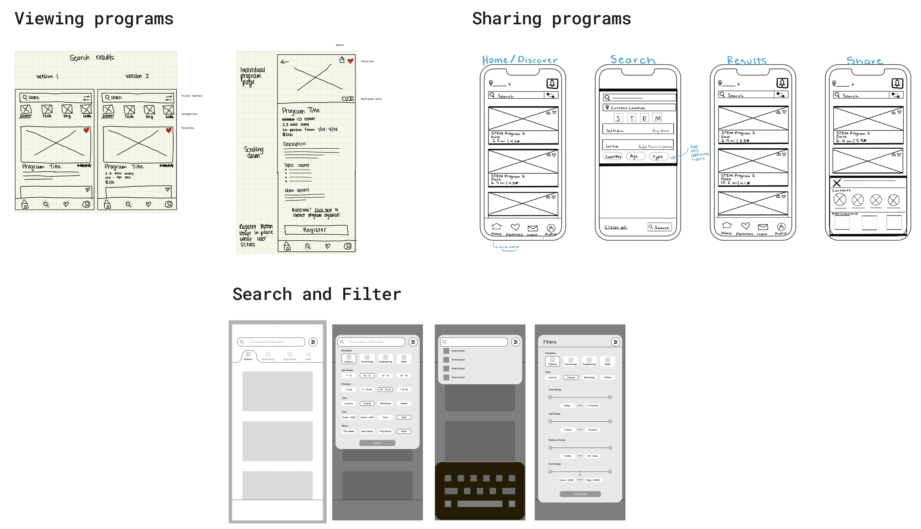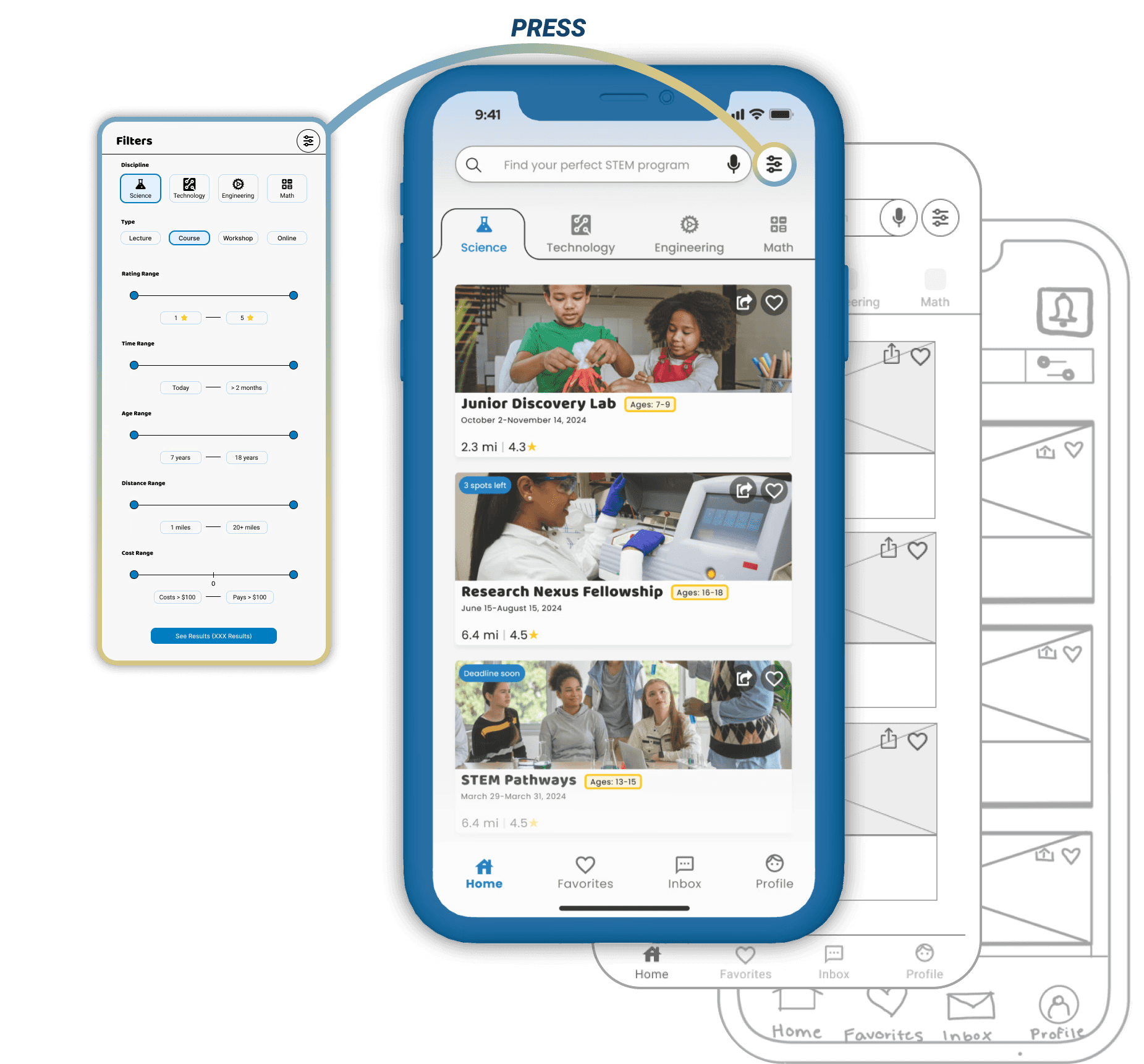 Designing the entire end to end flow of finding and learning about STEM programs.